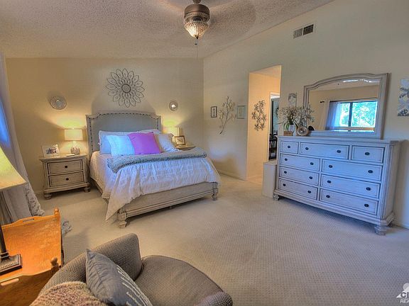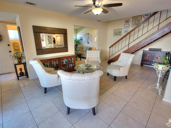 JUST REDUCED! Great Location!! This 2 story condo is AMAZING! Located just minutes from Hwy. 111 and the Shops on EL PASEO in a very quiet community. This home sits close to the pool, tennis courts, and has GREAT parking! Bedroom and bathroom upstairs and downstairs and a beautiful water fountain in the back yard.