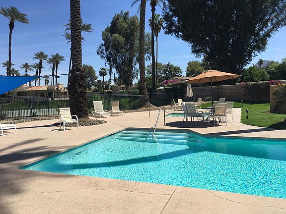 Newly painted inside and outside 3 bedroom 2 bath free standing condo with 2 car garage and enclosed back patio. Gated community with pool, spa and tennis courts. Near El Paseo, schools and Palm Desert fabulous park. Granite kitchen counter and bathrooms.