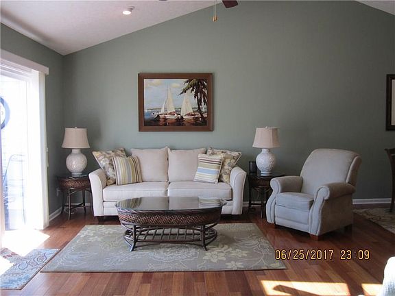 Beautiful immaculate 3 bedroom+den/family room, 2 1/2 bath, 2CG, main channel waterfront Condo w/open floor plan in PIRATE'S COVE is new to market. Home has gorgeous solid wood 3 1/4 wide wood flooring in entry, dining area & LR. Kitchen has granite counters, tile backsplash & tile under kitchen bar w/porcelain flooring. Kitchen appliances are upgraded as well as cabinetry. Includes a pantry. Living Room has filtered skylights, gas decorative FP and an oversized triple sliding door leading out to a 10x18 Brazilian wood deck. 1st floor Master Suite has new carpeting & also w/a door leading out to deck. Master bath has double sinks as well as walk-in shower. There is a 1st floor power room as well as a laundry area that includes W/D. Lower level has 2 bedrooms , den/family room & full bathroom. A wet bar w/granite & upgraded cabinetry, microwave & refrigerator in Rec room. Walk outside into an enclosed screened-in 10x18 patio. Walk outside to your dock w/2slips. LIFT included.