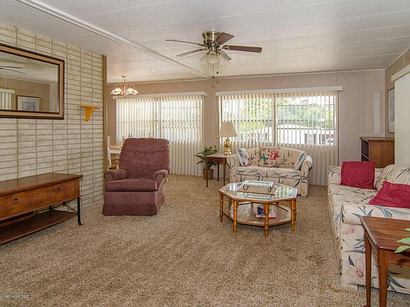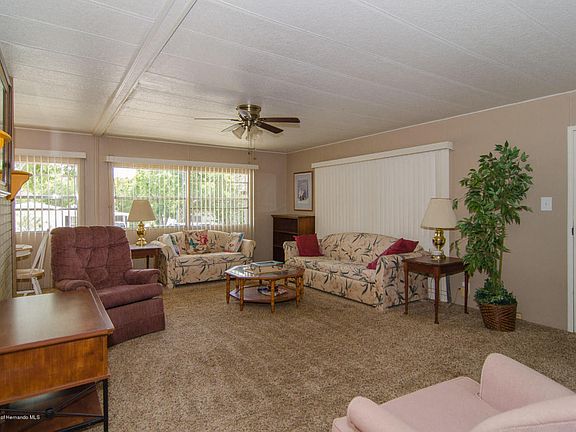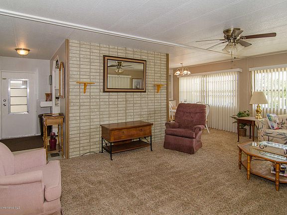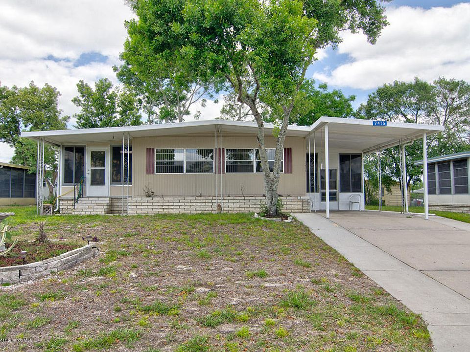 This light & bright 2/2 manufactured home is well maintained and sits high and dry. Expanded galley kitchen with extra pantry space. Two Florida rooms include a large acrylic enclosed sunroom! UPDATED BATHROOMS. Extra large utility room and workshop. Newer appliances. Solid skirting. NEW A/C in 2014!! Located in popular 55+ community where you own your own land. Community amenities include tennis, heated pool, horseshoes, bocce, community center, pickle ball and more. Located near major medical facilities, shopping and restaurants.