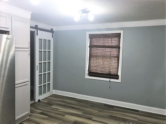 This townhouse has just about every imaginablefeature you could want in a home. Enter the spaciousliving room with big windows and a serene paint color and pass by the powder room and the large under stairstorage area to get to the thoroughly modern kitchen. The huge eat-in-kitchen has a beautiful ceramic floor, updated stainless appliances, a glass backsplash and granite countertops. Slide back the barn door to enter the laundry room. Upstairs the serenity continues in the 3 classic bedrooms. The master bedroom has two closets...the sharing is over! There is a medium sized room and a smaller room that could be an office, a dressing room, or there's plenty of space for a child's bed and dresser. The family bath has been tastefully updated as well.Outside there is a driveway and a fully fenced-in yard. Walk out on a patio whose furniture could stay if you wanted. There is plenty of lawn space. Use of the shed is not included. Zoned for Halstead Academy, Loch RavenTechnical Academy and Parkville HS. Available now.