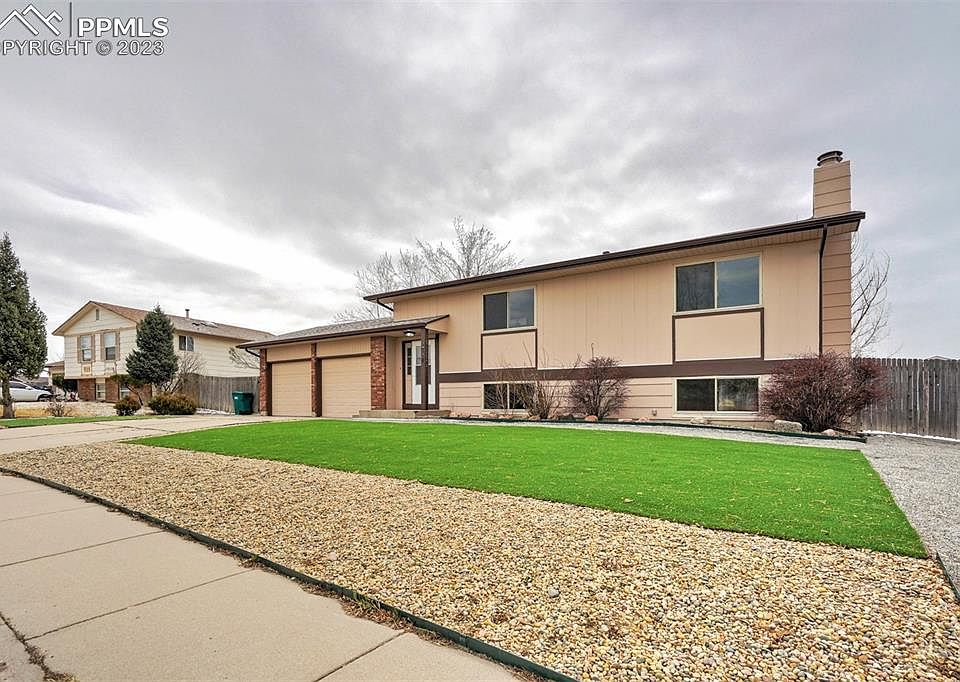 Come and see this beautiful bi-level 4 bedroom, 2 bath home that sits on .22 acres and located in Sunrise Ridge! As you enter, you'll love the fresh new paint throughout the entire home and the water heater is brand new. On the upper level there's a large living room with 2 bedrooms and a full bath. Walking into the dining room there's new tile flooring and a walk-out patio that leads you to a recently upgraded timber frame deck. Next to the dining room is the eat-in kitchen that has been updated with new cabinets, countertops and new tile flooring. Down on the lower level you have a large family room with wood burning fireplace, 2 additional bedrooms, another bathroom as well as separate laundry. You’ll find great storage under the stairs too and there's 2-car garage! The exterior also has fresh new paint and there's a nice sized fenced yard with a dog run, shed and an apple tree. The front yard is landscaped with turf and there's a graveled section to the left of the driveway for additional parking. Oh and did I menton there is NO HOA? All of this and located close to Powers, Fort Carson, Schriever AFB, Peterson AFB, Colorado Springs Airport, I-25, Hwy-21 and the Amazon Distribution Center. What are you waiting for, schedule a showing today!
