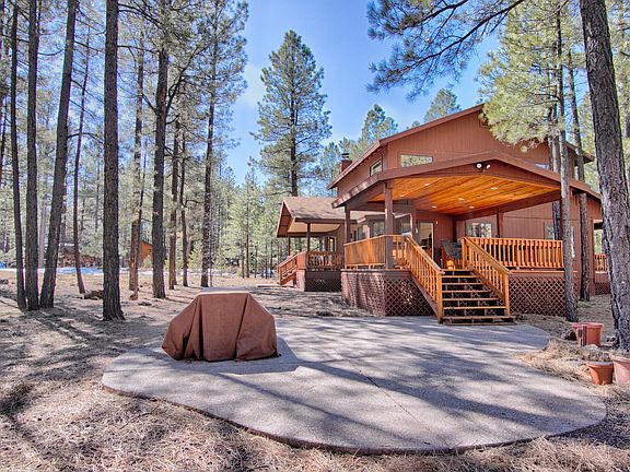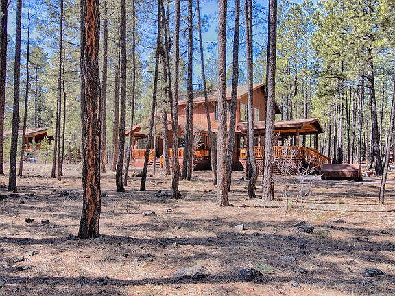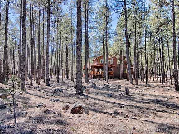 .75+/- Acre property bordering National Forest. 4 bedroom 3 bath. 2 car garage. Multi-level. Master down, wood burn fireplace. Two covered decks; kitchen dining room and master bedroom. A piece of heaven right here in Pinetop Country Club.