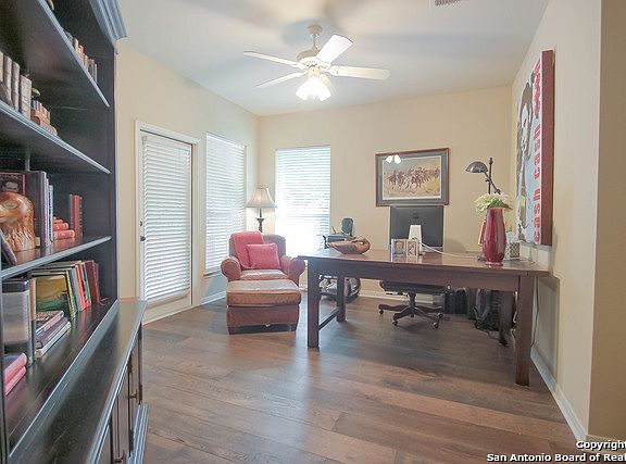 Beautifully updated single story home on quiet cul-de-sac that sits on greenbelt backing to the Cibolo Creek. 3 bedrooms, 2.5 bath with an office. Updated Hardwood floors throughout living/dining/kitchen. Updated kitchen with tons of storage, granite counters, and double ovens. Single story floorplan, NO STEPS! Large family room looking out to Texas Hill Country and awesome deck. Easy access to Fair Oaks Country Club & Cibolo Creek Nature Trail managed by HOA. New wrought-iron fenced in yard. Location!