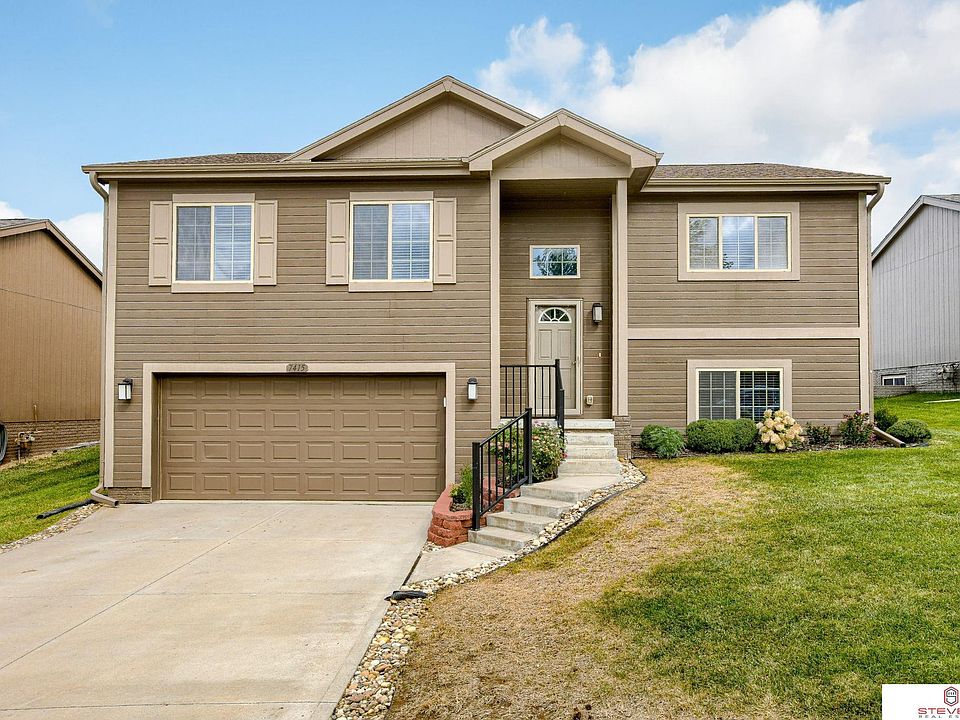 Fantastic 3 Bed, 3 Bath & Expanded 2 Car Garage home in NW Omaha! Open floor plan w/ vaulted ceilings, neutral decor. Large Kitchen w/ lots cabinets, tons of counter space & Stainless Appliances that all stay. Large Living room area has gas fireplace. Primary suite has walk-in closet & double vanity in the 3/4 bath. Finished lower level Rec room is perfect for entertaining & has rough-in for 3rd Bath. HUGE Backyard offers tons of privacy w/ large Deck and fenced yard. The oversized garage provides tons of space for vehicles and extra storage. New Roof '24. Convenient NW Omaha location- short drive to Standing Bear & Flanagan Lake! AMA