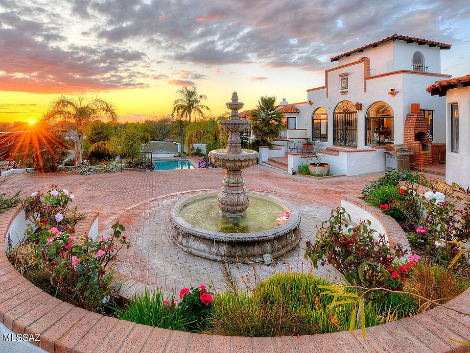 Casa Esperanza: an entrancing Spanish Revival elegantly remodeled over several years by current owner boasts dazzling mountain & city views on 6+ privately gated acres. Builder Sonny Morales was entrusted w/the restoration work of National Historic Landmark San Xavier Mission & this home is also a work of art! All new STUNNING kitchen, chic baths, & captivating views from almost every room. 2 charming yet elegant living rooms, formal & informal dining, 2 home offices (or bedrooms)PLUS 2 more ensuite bedrooms. Sumptuous primary suite w/luxurious spa-like bath, a private coffee/wet bar, f/p & sweeping view terrace. Main living space is all one level & tucked below are the bonus room, home theatre & gym! Sparkling pool, spa, cabana, fountains & privacy! DETAILED FEATURES LIST AVAILABLE!