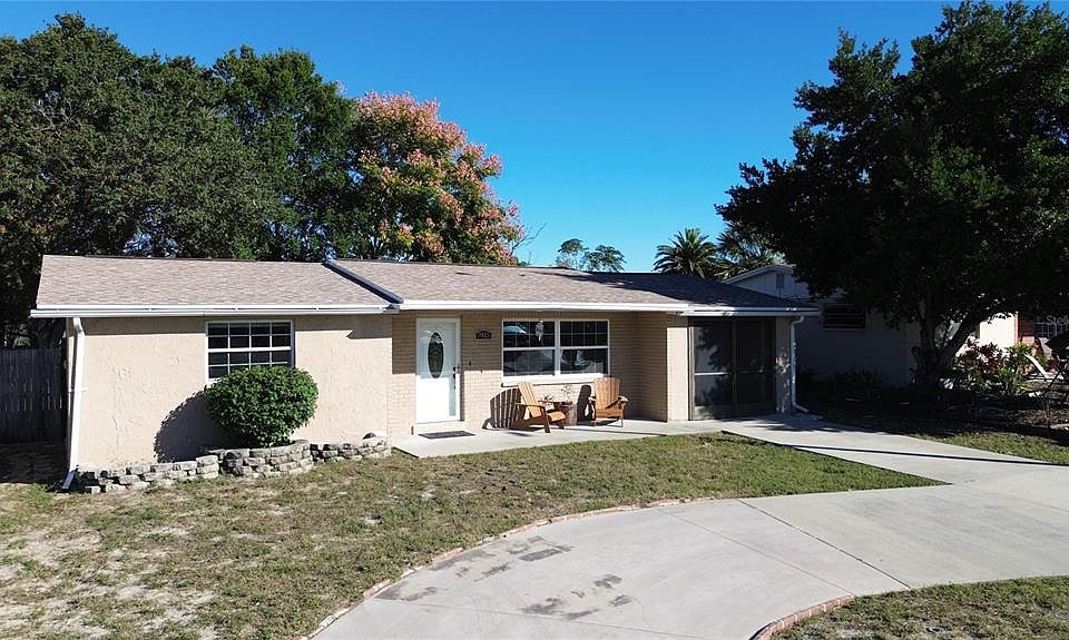 $10,000 PRICE REDUCTION!!! NO FLOOD NO HOA NEW ROOF Come see this Completely Remodeled Home with Upgrades Galore. You're sure to be impressed as soon as you cross the threshold. The floor plan flows perfectly from room to room and is completely Carpet Free with Gorgeous 18" Ceramic Tile throughout; ideal for those with allergies, and pets! High Impact Hurricane Windows were installed in 2011 and the roof was replaced in 2021. The kitchen has newer Stainless Steel Appliances, Granite Countertops, and Soft Close Solid Wood Cabinets. The Master Bedroom is very spacious with privacy windows and both bedrooms have Large Cedar Closets. Enjoy the nice Screened Lanai and Private Back Yard complete with Utility Shed. The garage has been converted to a Bonus Room, with a half bath, and private entrance. All work was permitted. The Circular Driveway will accommodate multiple vehicles.
