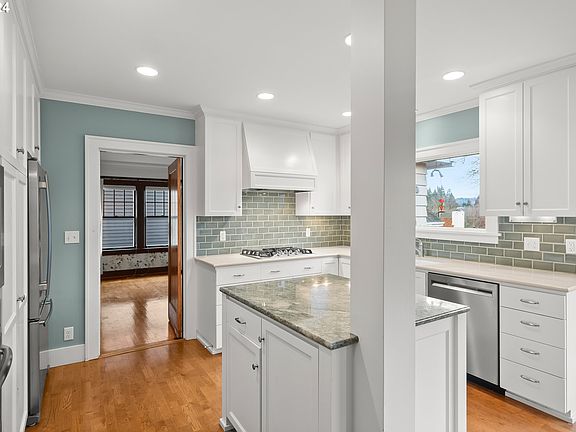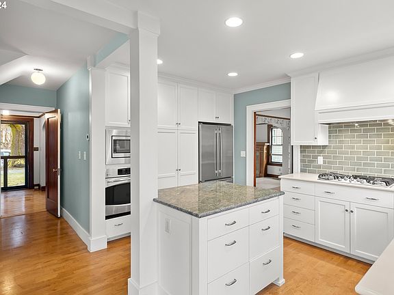 Charming one-of-a-kind Dutch Colonial home situated in the coveted Eastmoreland neighborhood! Timeless features include coffered ceilings, crown molding, original hardwood floors, curved archways, and some beautiful original built-ins. Beautifully updated chef's kitchen with classic white cabinetry, granite countertops, stainless steel appliances, custom stained-glass windows, heated floors and a sunny eating nook. Spacious family room with architectural Gum Wood fireplace, coffered ceiling, large windows and custom built-in wood case. The formal dining room features custom built-ins and a quaint sunroom with heated floors and abundant natural light. Lovely blend of old and new in this picturesque home. Updated spa like bathroom with a soak tub. From the roomy primary suite walk out onto the large deck and enjoy the magnificent views! Spacious finished basement with office, bar area and full bathroom. Garage designed for extra storage. Backyard oasis with large deck perfect for relaxing and enjoying the mature garden. All this in a prime location with exceptional schools and Eastmoreland Golf Course. Close to shopping, restaurants, and parks galore. [Home Energy Score = 1. HES Report at https://rpt.greenbuildingregistry.com/hes/OR10224338]