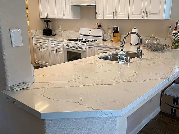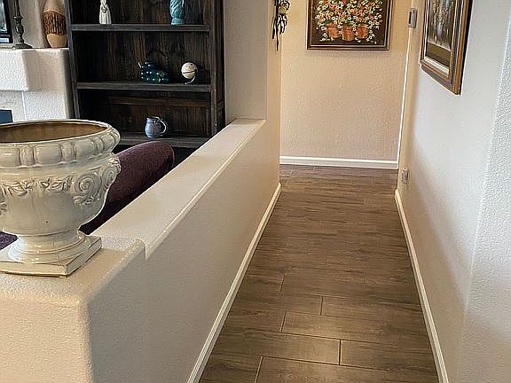 Welcome to your new home! Come tour this lovely home with a very open floor plan perfect for entertaining. This home has three spacious bedrooms and two full baths. This home is definitely going to go quick so get an appointment to see ASAP! Kitchen was completely remodeled in fall of 2019 with all new white cabinetry and new quartz marble-look countertops and backsplash. Newly painted and gorgeous new wood look tile installed throughout kitchen, dining, living rooms, hallway, first bathroom, and laundry room. Wood parquet flooring in bedrooms. Primary/master bedroom is huge with a large closet and a walk in closet as well. Both bathrooms have granite countertops with new sinks and toilets. Primary bathroom has double sinks and a large oval tub. Lots of storage space in the double doored hallway linen closet. New exterior paint and gutters done within last 5 years. White pergola covered patio provides the perfect amount of shade for those hot summer days. Vaulted ceilings in living and primary bedrooms add to the open and spacious feel. Backyard has stone wall across the back and is ready for you to add your personal touch. Attached two car garage has a wall of cabinets for all of your storage needs. Close to lots of shopping, restaurants, pharmacies, entertainment and the freeway. Home will be shown by appointment to prequalified buyers July 9th, 10th and 11th. Call Gabrielle at 661-549-5397 for your appointment to see!