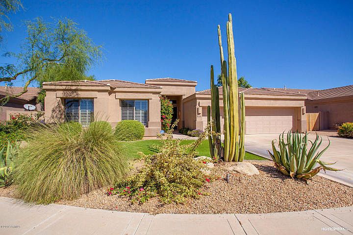 Pride of ownership with this immaculately maintained home. Resort like private backyard with pebble-tec pool, waterfall, grassy area, travertine accents and loads of luscious landscape. Popular 4 bed/2.5 bath spacious model with great layout and entertaining areas. Granite in kitchen and custom made leaded glass accent windows. Flush mount speakers in family room and patio. Move-in ready. Close to Grayhawk Elementary School and walk/bike paths.