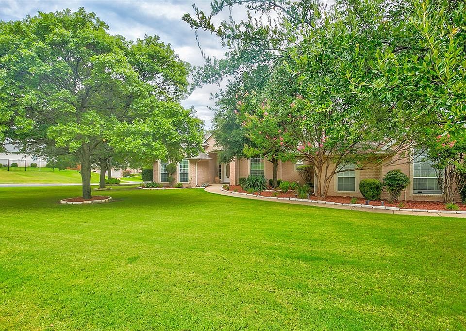 TWO MASTER SUITES. Gorgeous custom home on large corner lot with mature trees in sought after Eagle Ridge Addition. This well maintained home has 4 bedrooms, 3 bathrooms, 2 dining areas, 3 car over sized garage, storm room and a large deck overlooking the backyard and is handicapped accessible. Master suite with sitting area flows into the master bath which has a jetted tub, dual sinks, vanity, stand up shower and large walk in closet. Second master has sitting area and flows into bath with shower and large walk in closet Living areas have beautiful hardwood floors and crown molding. Newly installed leaf filters. Invisible fence and many more upgrades! Close to Eagle Mountain Lake, shopping and dining.