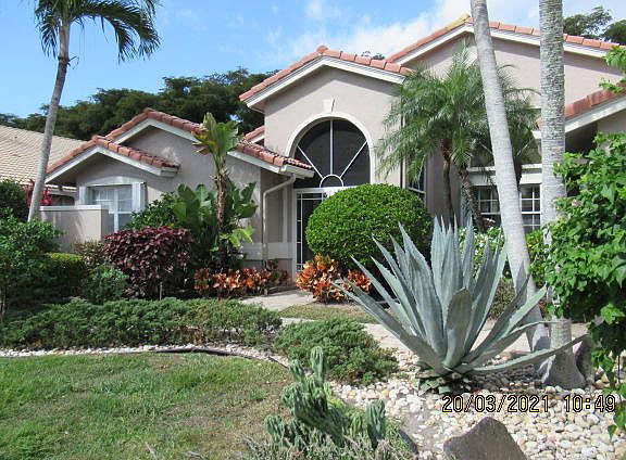Lushly landscaped! This spacious, lovingly maintained 3-bedroom 2.5 bath (Dover Model) is located in the highly sought-after man gated 55+ community of Lakeridge Falls. You will enter the home through a screened front entryway enclosure. The Interior features include: New Tile in the main areas, a gourmet kitchen with 2-year-old Stainless Steel Appliances, with Silestone counter tops, 42'' Cabinets, many High Hats for additional lighting and 6 Ceiling Fans. The Master Bedroom with 2 walk in closets features an en-suite bathroom with his and hers sinks, make up area, large soaker tub as well as a spacious shower. The covered, tiled, extended back Patio with screen enclosure provides outdoor comfort all year long!