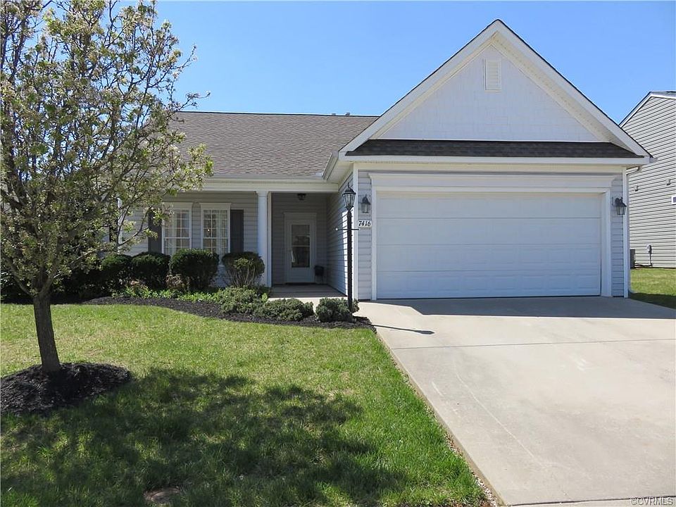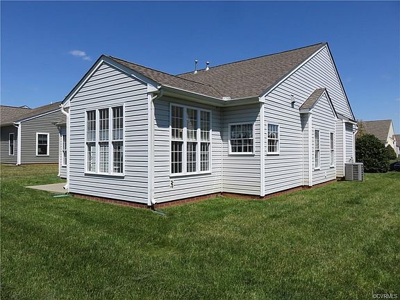 One level, low maintenance patio home in a fantastic 55 and over Henrico County neighborhood! This well built home is clean and ready to go! Brand new wood flooring throughout! Step into this open floor plan and admire a spacious living room that flows into the dining room and is adorned with columns, a gas fireplace and wood floors. The roomy kitchen offers plenty of cabinet space, a corner sink and all appliances are included. The sun room/ breakfast area adjacent to the kitchen provides sliding doors to the concrete rear patio which is a great place for enjoying fresh air and your favorite beverage. The master suite boasts a bay window and a full master bath. Two more bedrooms and another full bath along with a laundry/ utility room complete the living space. Attached, two-car garage with automatic door opener. Concrete driveway, sidewalk and covered front porch. Community club house with fitness center and heated indoor pool! Best price in Settlers Ridge! And what a location! So convenient to downtown Richmond, VA, Virginia Capital Trail, shopping, dining, local interstates, the James River, nearby historic plantations and more! Easy access to Williamsburg too! You'll love it.