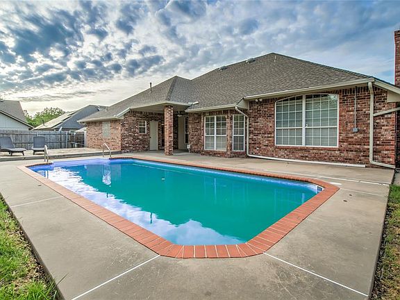 Back on the market at no fault of home. Get ready to have the best summer ever in your own pool! Perfect separate living space with separate huge bedroom/bonus (converted 3rd car garage) + private full bath + private exterior entrance on opposite side of home than the rest of the bedrooms. All single story. This backyard oasis is private with a large pool, covered patio + deck to seat great dinner parties. Inside the home the kitchen is large and open to the main living area. Entryway opens to a 2nd and 3rd separate living space (great flexible floorplan). Three bedrooms plus an adjoining study are off on one wing of the home. Large bonus room/4th bedroom on the other wing with own private bathroom. Great space to spread out - all on one level. Beautiful oak woodwork and trim throughout the home and built-in cabinets on either side of the fireplace. Primary suite is large with a spacious bathroom and separate vanities. Huge Australian closet, Whirlpool tub, sitting make-up space and private entrance to the pool in the backyard. Brand new carpet, paint and cooktop. Beautiful natural light and tall windows. This home is in a great location - quiet neighborhood within minutes of Kilpatrick Turnpike and Northwest Expressway. Only 2 minutes from Putnam North high school. BRAND NEW OFFERING: $10,000 REMODELING ALLOWANCE! Great opportunity to have fun making this space your own style! 48 hour kickout clause contingency in place.
