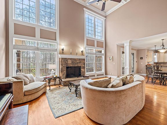 Nestled in the Galloway subdivision in Wake Forest, this custom estate epitomizes luxury living. Boasting a 1st floor primary suite with double fireplace & a separate in-law/guest bedroom with ensuite, convenience & comfort are paramount. Situated on over an acre of wooded landscape, this home offers a tranquil retreat with inviting space for entertaining, relaxation, & remote work. 1st time since 2006, this home showcases a gently sloping lot with mature greenery, circular driveway, striking, double metal front entry doors, elevating curb appeal & functionality. The exterior features covered & uncovered tiled areas, a screened porch & exterior patio, perfect for embracing the natural beauty of the yard. Enhancing everyday livability, the side entry leads to the mud/laundry room & provides separate access to the in-law/guest suite. Combined with the concrete areas, the garage & drive provide ample parking, ensuring seamless transitions & ample convenience for residents & guests alike. This 5-bedroom home lives like 6. Don't miss this opportunity to make 7416 Portpatrick your forever home!