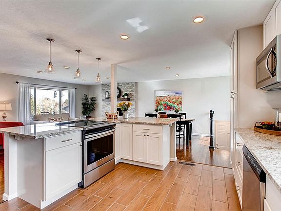 Beautifully remodeled 5 bedroom, 2 bath, plus one office/den home in the highly desirable Bel-Vue neighborhood and Littleton School district. Situated on a large corner lot of .25 acres with professional landscaping and mature trees. Gorgeous refinished hardwood floors, interior designer chosen paint, new plush carpet on lower level, two large fireplaces, one with stacked stone and reclaimed wood mantel, brand new kitchen with tumbled stone back splash, stainless steel appliances, and new tile flooring. Granite counter tops galore and two lazy Susans! New bathrooms, double vanity and higher countertops for convenience. All new doors and light fixtures. Oversized two car garage. Excellent family home across from award winning Runyon Elementary School and very near Heritage High School. The list goes on!
