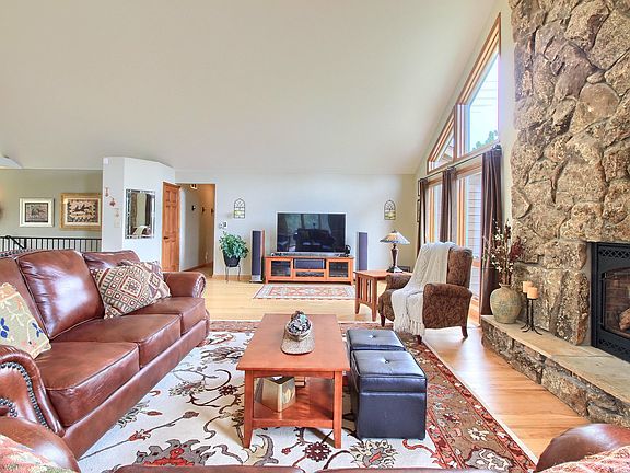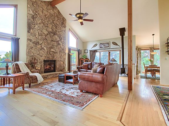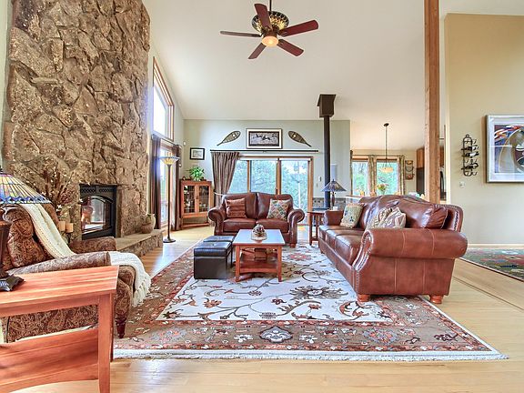This mountain contemporary is on a wooded 2 acre site that is gently sloping. As you enter you will see the vaulted great room with hardwood flooring, gas log moss rock fireplace and big windows for natural light. The formal dining room is open to the great room, perfect for entertaining. The gourmet eat in kitchen features ample slab granite counter tops, stainless appliances including a gas range, and floor to ceiling windows. There is a free standing wood burning stove between the kitchen and great room that keeps the home toasty on the coldest snow days. The large master suite features a walk in closet and an updated 5-piece master bath with an over sized jetted tub, slab granite counters and glass shower enclosure. There are two additional bedrooms on the main level and a full bath. Down the stairs to the walk out level and you will enter the spacious family/recreation room that walks out to the fenced area behind the home. It has a full wall of built in shelving and the pool table and accessories stay with the property. There is a generous 4th bedroom on this level with a full daylight window. The conveniently located 3/4 bath has a glass shower enclosure. The laundry room has shelving and room for the refrigerator or freezer. You will be able to store all of your toys in the over sized 3 car garage. The furnace and central air conditioner are new in the last couple of years. This home has been impeccably maintained by the current owners. You will appreciate the wrap around deck and the roll out awning for extra shade. The fenced area is perfect for your dogs or little ones. With the home sitting below the road it affords extra privacy. There is a transfer switch for generator power in case of a power outage, a hobby/workshop in the basement, fully work from home capable with good high speed line of site internet and 4G LTE cell signal, and the option to purchase any of the furniture currently in the home.