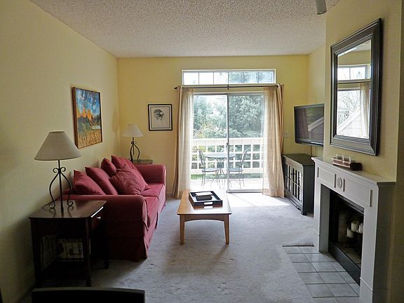 Sunny, spacious 2-bedroom, 2-full bath top floor unit in Country Club Greens. Newer stainless steel kitchen appliances, walk-in closets in both bedrooms, new washer and dryer included. One car garage with loads of storage space. Deck off great room overlooks community green. Water, sewer and basic cable included in rent.