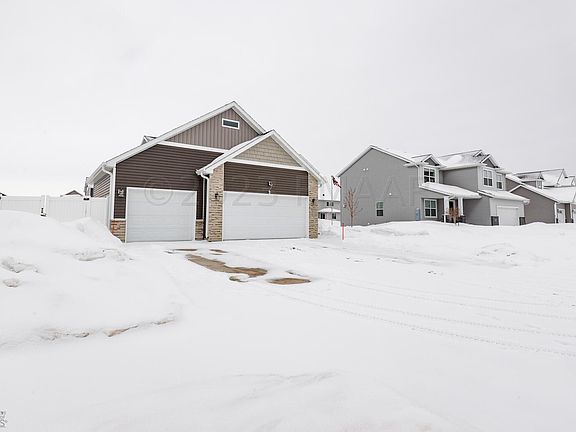 This stunning, custom-built home is situated in the Eagle Point subdivision of South Fargo. Step inside to beautiful LVP flooring stretching from the entryway and into the upper level. Upstairs, bold crown molding, a wooden accent wall, and THREE pantries are sure to impress. A unique primary suite offers even more to love with its private walk-up closet, soaking tub, and distinctive design. In all, this home boasts 4 bedrooms, 3 full bathrooms and 2319 square feet of living space - all with a fresh coat of paint. The attached 3-stall garage is insulated and features 220v heat, shelving, and 2 floor drains. Outside, a new maintenance-free deck, full fence, landscaping and sprinklers create a dreamy backyard escape. What's not to love? Call your favorite realtor today!
