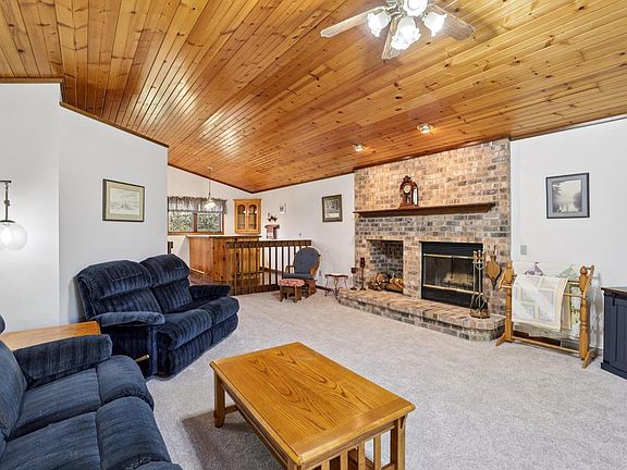 Welcome Home! This wonderfully well-kept 3-bedroom 1.25 bath home is not your average Bi-Level and sits on just under an acre of land w/ mature trees! The main level features a huge open concept vaulted great room w/ large cathedral windows, a wood burning fireplace, & a full bar area! It also includes a front living room w/ lots of natural light, 3 bedrooms including the Primary w/ walkthrough full bath, a nice kitchen space w/ lots of cabinetry, & a dining area w/ a walk-in pantry & a patio walkout to the backyard! The LL has a finished exposed living room w/ a wood burning FP, access to the attached 2 car garage, the laundry area, a quarter bathroom space w/ enough room to add a sink & easily convert to a 1/2 bath, & a huge partially finished 30x16 rec room space with tons of potential