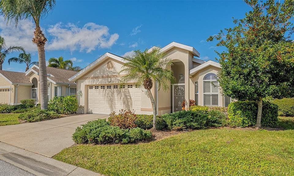 Upon entering this meticulously maintained 3 bedroom, 2 bath home, you’ll note the open and airy feel from the light filtering through plantation shutters of the large windows. A lovely breakfast nook nestled under front windows leads the way to the updated kitchen with glass backsplash, granite counters and soft-touch cabinets. The kitchen overlooks the dining area and open living room. High ceilings are a welcome feature, along with the updated bathrooms. Primary bedroom features en-suite bath with large spread counter and double sinks. A 2-car garage, separate laundry room and screened lanai add to the coveted features of the home. Community pool is a short walk. Lawn maintenance and irrigation are included in the low monthly maintenance fees. Close to the Palm Aire Country Club, golfing, world-class shopping at The Mall at University Town Center, fine dining, Sarasota Bradenton Airport, downtown Sarasota, I-75 and fabulous Gulf Coast beaches, yet tucked away in a one-of-a-kind, private, quiet community.