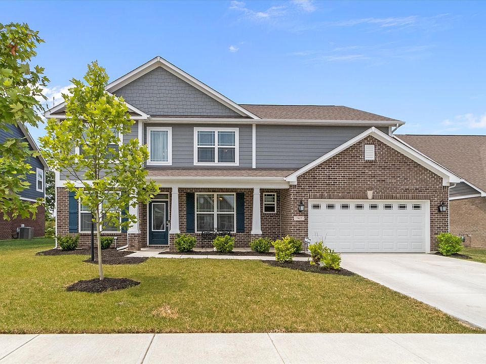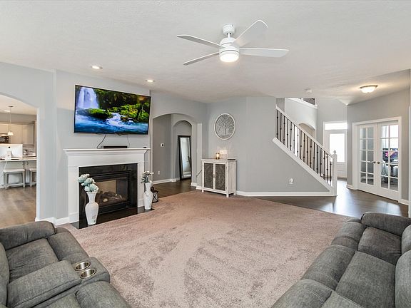 Fabulous DR Horton built Denali floor plan! 3,491 square feet includes 4 bedrooms, large loft for private entertaining & laundry all upstairs! 9' 1st floor ceilings! Main floor den/office! Double sided gas fireplace adds warmth & ambiance to both the great room & breakfast nook! Kitchen features include gorgeous light gray shaker style cabinets w/crown molding & brushed nickel hardware, quartz countertops & large island w/breakfast bar top, built-in double ovens, electric cooktop, microwave, stainless steel appliances, laminated hardwood flooring & enormous walk-in pantry! Architectural details throughout including transition archways & wrought iron loft & stair railing! Large home site with a beautiful tree line in the backyard!