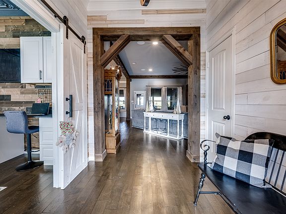 NESTLED ON A PICTURESQUE 1 ACRE LOT, THIS RUSTIC ONE STORY HOME OFFERS 4 BEDROOMS, 2.5 BATHS, AND A 3 CAR GARAGE. NATURAL TEXTURES BLEND BEAUTIFULLY WITH REFINED SOPHISTICATION, CREATING A SENSE OF CASUAL ELEGANCE HIGHLIGHTED BY STAINED WOOD BEAMS, CUSTOM DOOR CASINGS, WARM HARDWOOD FLOORING, AND INVITING FINISHES THROUGHOUT. A WELL APPOINTED OFFICE WITH BUILT IN DESKS AND SHELVING SITS BEHIND CHARMING BARN DOORS AND CAN EASILY SERVE AS A SECONDARY LIVING SPACE. THE GRAND LIVING AREA IS ANCHORED BY A COZY FLOOR TO CEILING STONE, WOOD BURNING FIREPLACE, IDEAL FOR GATHERING WITH FAMILY AND FRIENDS. DESIGNED FOR CONNECTION AND CONVERSATION, THE LIVING SPACE FLOWS SEAMLESSLY INTO A DREAM KITCHEN FEATURING QUARTZ COUNTERTOPS, SS APPLIANCES, ABUNDANT CABINETRY, VENTED HOOD, WALK-IN PANTRY, AND AN OVERSIZED ISLAND PERFECT FOR COOKING AND ENTERTAINING. REGAL DINING AREA IS ENHANCED BY A BUILT IN BENCH PROVIDING SEATING FOR 8 OR MORE. INDUSTRIAL RUSTIC LIGHTING, AND ABUNDANT NATURAL LIGHT COMPLETE THE SPACE. DEDICATED MEDIA ROOM FOR FAMILY MOVIE NIGHTS & POPCORN! THE PRIMARY SUITE, WITH SITTING AREA, OFFERS A SPA INSPIRED BATH WITH DUAL SINKS, VANITY, WALK IN SHOWER WITH SEATING, CUSTOM CLOSET, AND A RELAXING GARDEN TUB, A TRUE RETREAT. THE GENEROUSLY SIZED SECONDARY BEDROOMS SHARE A FULL BATH WITH TUB SHOWER COMBO, WHILE A CONVENIENTLY LOCATED POWDER ROOM IS PERFECT FOR GUESTS. LAUNDRY ROOM FEATURES CABINETRY, CNTRTOPS, AND SPACE FOR A FRIG. THE OUTDOOR OASIS IS EQUALLY IMPRESSIVE, FEATURING SUNROOM, EXTENDED DECK, AND A FLAGSTONE PATIO WITH FIRE PIT. A 17 FOOT SWIM SPA CAN BE ENJOYED ALL YEAR ROUND FOR BOTH EXERCISE AND RELAXATION, COMPLETE WITH SURROUNDING DECK AND SEATING. THE 288 SQ FT WORKSHOP PROVIDES SPACE FOR STORAGE OR CRAFTMANSHIP, AND SOLAR PANELS ADD EFFICIENCY TO THIS EXCEPTIONAL PROPERTY. OFFERING A PERFECT BALANCE OF PEACEFUL COUNTRY LIVING WITH EASY ACCESS TO CITY AMENITIES, THIS HOME IS AN IDEAL RETREAT YOU'LL LOVE COMING HOME TO. FURNISHING ARE NEGOTIABLE!