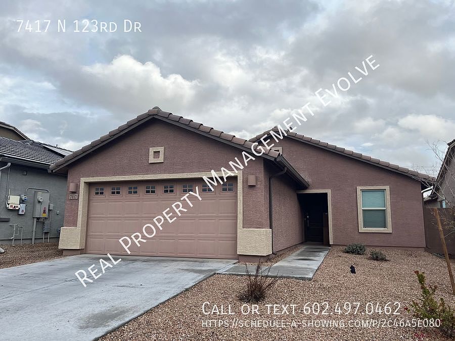 Beautiful 3-bed, 2-bath Glendale home just built in 2020. Open-concept kitchen features gorgeous quartz counters, white Shaker cabinets, pantry, and all major appliances included. Tile throughout and carpet in the bedrooms. Primary bedroom has ensuite bathroom and big walk-in closet. Enclosed laundry room with washer and dryer. Attached garage and large backyard with covered patio. Quiet neighborhood with easy access to the 303 highway. Hurry to schedule a tour - this will go quickly! *Pets not accepted. Dryer Stove Washer
