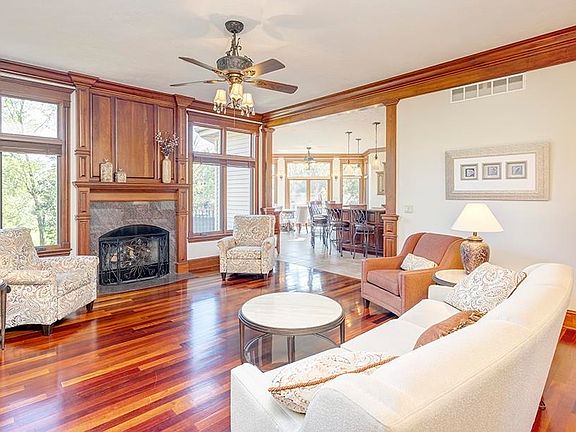 ABSOLUTELY STUNNING FULLY EXPOSED RANCH WITH OVER 4,000SF FINISHED LIVING SPACE! This home has everything you'd dream about in a home...and so much more! HUGE (28x20) kitchen with 12' island, stainless steel appliances with double ovens, wall of windows and walk in pantry. Brazilian Cherry hardwood flooring throughout foyer, living and dining rooms. Three fireplaces (living room, primary bedroom suite and lower level). First floor large laundry room with door, first floor home office. Fully exposed lower level features theater room, wet bar, two additional bedrooms and full bathroom with double vanity, flex room currently used for crafting room and lots of unfinished storage. Picturesque backyard has large stone patio with firepit and newly added pond with waterfall feature. 3.5 car side load garage. Situated on over 3/4 acre with privacy from surrounding homes. Furnace only 2 years old. HSA Home Warranty included.