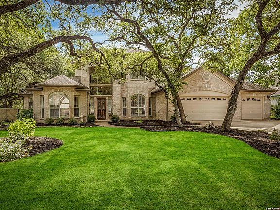 OPEN HOUSE: JUNE 24 @ 12-2PM Welcome to this stunning two-story brick & stucco home nestled among beautiful trees on a quiet cul-de-sac in FAIR OAKS RANCH! Rich wood flooring, high ceilings and natural light grace the large living areas. Work from home with a private office including built-ins and double glass doors. Enjoy preparing meals in the fabulous kitchen with granite counters, and plenty of storage with custom built cabinetry, built-in desk, walk in pantry and spacious breakfast room overlooking the family room with wood burning fireplace. Huge primary suite with access to the patio, elegant SPA bath; walk-in shower, free standing soaking tub and two walk-in closets. The perfect floor plan upstairs includes a game room (or 5th bedroom) with a covered balcony, two guest rooms with Jack N Jill, and a 4th bedroom with ensuite bath. Enjoy entertaining friends and family under the fabulous covered outdoor living area with fireplace, grill, and PIZZA OVEN! RELAX in the large hot tub overlooking a HUGE fenced yard with exceptional privacy and beautiful trees. Excellent Boerne Schools! Join the Fair Oaks Ranch Country Club to enjoy golf, tennis, pools, athletic center and FUN!
