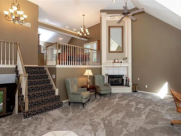 This completely refurbished California Split has new carpet, hardwood and beautiful ceramic tile floors throughout, plus a new roof. Multi-level design w/an open concept floor plan, large eat-in kitchen overlooks vaulted Great Room. Large master suite has his and hers walk-in closets, whirlpool tub and double vanity. Lower level Family Room has a home theater with custom built cabinets, wet bar and fireplace. Entertaining made easy! Office and half bath completes the lower level. Just minutes from KCI Airport!
