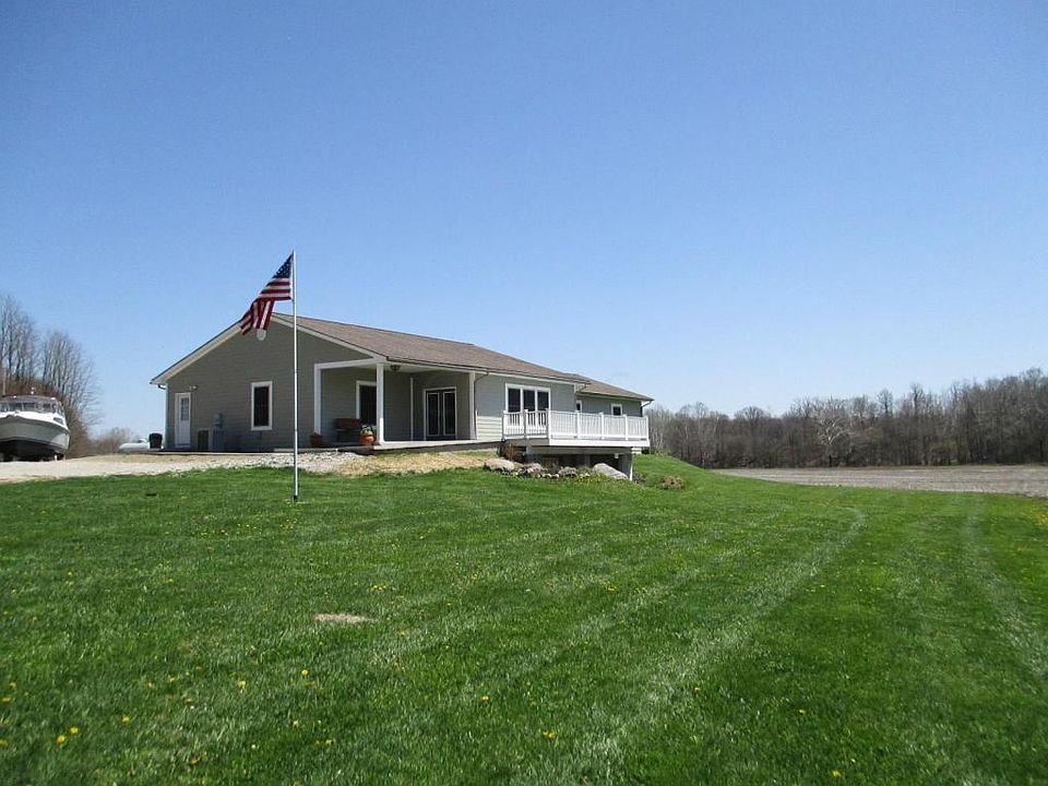 Custom built ranch home with tons of space! Many extras in this solid built home, including extra large rooms, Solid oak trim and 6 panel doors, solid oak kitchen cabinets in large kitchen with lots of counter and cabinet space! 9 ft ceilings! Large formal dining room. Tons of big windows throughout to let in natural light. This home is handicap accessible with 36'' wide doorways and 4 ft wide hallway. Full bath in hallway is also handicap accessible. Bathrooms have granite countertops & marble floors. Full walkout basement. Updates include new water softener & SS dishwasher. Outside, new concrete and new concrete stamped patio on rear. Home sits way back off road for privacy. Located just behind the Heart of Ohio Trail! Many more features in this must see ranch home! 10 acres!!