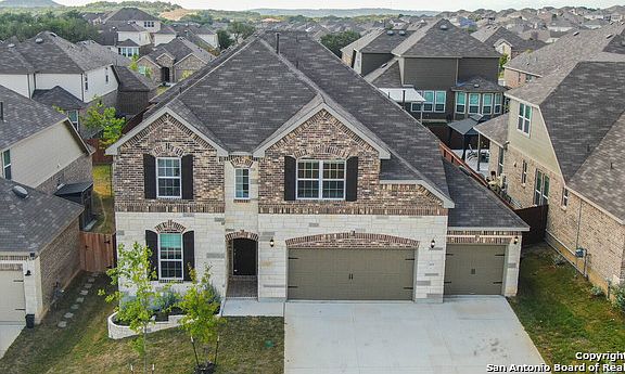 Looking for a Beautiful, Luxurious, Generously Sized Home within a highly active, newly built community? Looking to find a property that enjoys gorgeous hill country views, but just minutes from the city?Run, don't walk, to this amazing home located just outside of Fair Oaks Ranch! Built in 2020, this Stunning Home is seated in the highly sought after Community called Cielo Ranch that maps to the Boerne School District and includes a very hard to come by 3 car garage. This house features a HUGE 3793 sq ft floorpan. It comes with 5 bedrooms, 3 baths, media room, living area, upstairs game room and a breathtaking kitchen that features a HUGE island. This amazing kitchen is equipped with all appliances that include a Fridge, Gas Stove, Dishwasher, Built-in Microwave and Stove. A bonus homework nook is also included adjacent to the kitchen. The downstairs owner's suite features a stunning bay window, vaulted ceiling, his/hers closets, dual vanities and a HUGE walk in shower you have to see to believe. An additional downstairs bedroom is included by the front door, has a full bath very close by and includes a custom built murphy bed. Upstairs includes 3 bedrooms, 1 full bath and the perfect media room for movie nights that opens up into the game room. One of the upstairs bedroom also includes a custom built murphy bed and is the perfect accent to the family friendly home environment. In addition to this home, the seller also has installed ceiling fans, upgraded crown molding in the living area, a water softener system, upgraded floors in multiple rooms and beautiful custom blinds installed throughout the home. Save your MONEY and save the HASSLE and take advantage of preinstalled upgrades! Act TODAY before someone else takes your opportunity to call this beautiful hill country getaway your home.