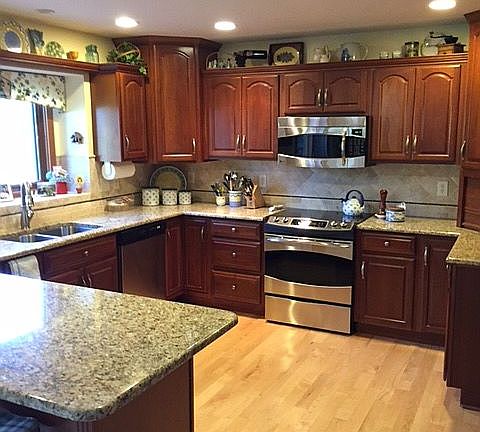 Beautifully landscaped home in upscale neighborhood. Nine tenth acre lot completely surrounded by wooded common ground. Large kitchen with granite counter tops, custom cherry cabinets and hardwood floors. Open concept with full length windows across end of great room. Large master bedroom on ground floor with enlarged walk in closet. Large master bath with garden tub and separate shower. Three bedrooms and a bonus room upstairs. One bedroom oversized with private entrance to bathroom. Second stairway leads from garage entrance to bonus room.
