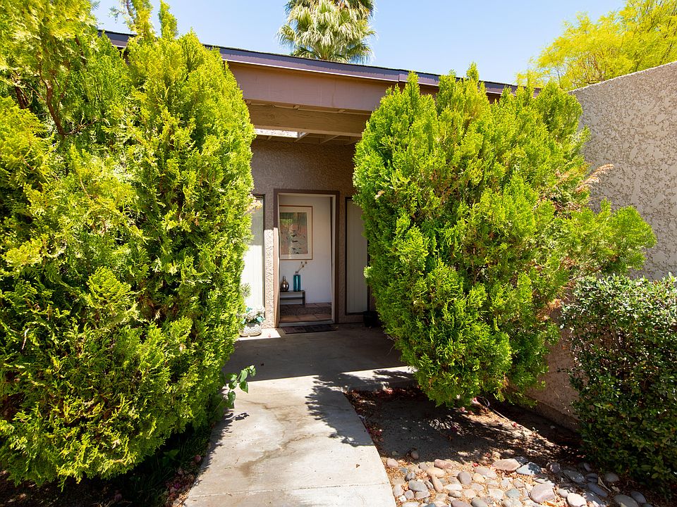 This very privately located unit with an attached garage with 2 Bathrooms and 2 Bedrooms plus Den is absolutely lovely. There is access to a private patio area off of the Den and Bedroom. There is an additional large Patio accessible from the Living room. This property has Vaulted ceilings and Tile flooring. Portola Del Sol is a gated community of 100 homes. HOA covers the roof, exterior fencing, maintenance of community grounds, 2 pools, 1 spa, Tennis courts and Pickle-ball courts.