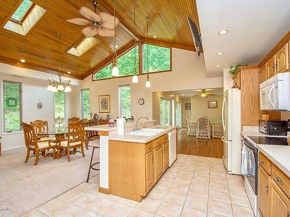 - RoomDiningRoomDescription: Dining Description: Wood cathedral ceilings + Skyl