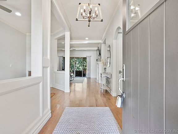 Elevate your lifestyle in the esteemed GATED Estates of Ravenwood! This meticulously crafted home rests gracefully on a lush .53-acre wooded lot, a tranquil haven conveniently located near the intersection of 111th & Sheridan. A verdant greenbelt envelops the property, adding a touch of serenity to the setting. Designed with discerning tastes in mind, this residence embodies sophistication at every turn. The intelligently designed 1st floor encompasses a master suite, a guestroom for hosting, a spacious office for productivity, and a sunroom that bathes the interior in warm natural light. In times of uncertainty, an interior storm shelter provides unparalleled security and peace of mind. Outdoor enthusiasts and entertainers alike will find solace in the covered outdoor living area. Imagine relaxing by the fireplace or grilling up your favorites in this enchanting space. Golf enthusiasts will be delighted by the presence of a putting green, a sanctuary for honing your skills amidst nature's beauty. The property's south-facing orientation not only ensures abundant natural light but also presents the perfect canvas for envisioning a future pool, adding a new dimension of luxury. At the heart of the home lies the chef's kitchen, adorned with custom cabinets that seamlessly blend functionality and aesthetics. The master bedroom exudes elegance and comfort, a sentiment echoed by the accompanying spa-like ensuite bathroom. Every corner of this home speaks to indulgence, with spa-inspired bathrooms promoting relaxation and rejuvenation. As you ascend to the 2nd floor, three bedrooms and two baths provide comfortable accommodations for family and guests. The game room, complete with a convenient kitchenette, offers endless possibilities for leisure and entertainment. This residence harmonizes opulence, comfort, and convenience, creating an unrivaled living experience.