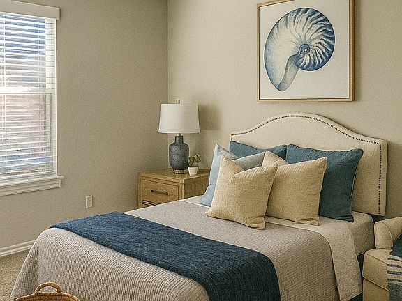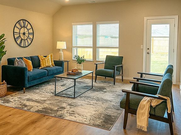 Additional features of this home include a covered rear patio, a tankless water heater, and luxury vinyl flooring throughout the main living areas, kitchen, and bathrooms. The **HOME IS CONNECTED** Smart Home package comes included, featuring an Amazon Dot, front doorbell camera, smart lock, home hub, smart light switch, and thermostat for enhanced convenience and security.