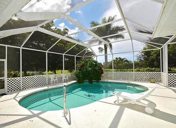 This is a modern 3 bedroom, 3 bath home on Alden Pines Golf Course on Pine Island. It features an open kitchen with solid surface counter-tops, large master suite with big walk-in closet, lots of room for entertaining by the pool, and much more. You will have room for cars, toys, and even a golf cart in the large 3 car garage, and will be delighted with the landscaping. The AC is less than 2 years old and the pool pump was just replaced. The heating ducts were recently cleaned. This has everything you need to enjoy the "vacation lifestyle" of Pine Island. Be sure to check out the virtual tour for a 3-D walk-thru of the house.
