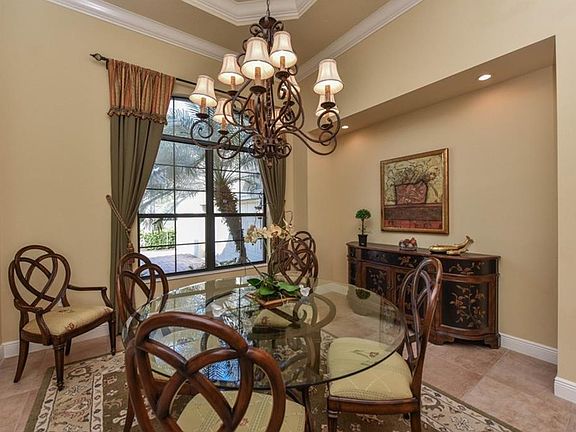 With breathtaking views of the lake and golf course, this stunning home is one to see. Enter through the wood designer doors and experience a spacious design with incredible crown molding, exquisite lighting in main living areas and ceiling treatments. The spacious formal living room boasts an incredible stone fireplace and panoramic outdoor views. The open kitchen offers exquisite wood cabinetry, stainless steel appliances, quartz countertops and a breakfast bar. Adjacent to the kitchen is a breakfast nook with incredible views through the aquarium window, a family room with spectacular ceiling treatment and sliding glass doors to the lanai. The owner's retreat and bath offer trey ceilings, a seating area, a private entrance to the lanai, walk-in closet, garden tub, dual sinks and a vanity. The outdoor living space boasts a lush tropical landscape, a new outdoor kitchen, pool with spa and plenty of space for entertaining. Other notable features include a private den/office, two guest suites, an oversized garage, an inside utility room with plenty of storage and an audio system. This enchanting residence stands out from all the rest.