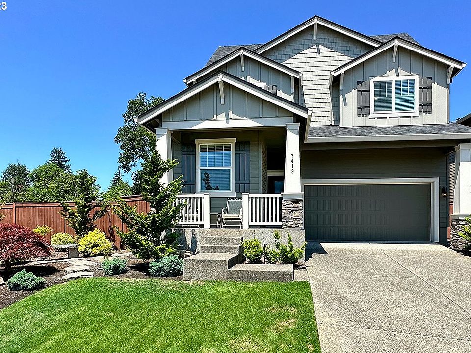 The Heights at Green Mountain, popular & highly desired location is where you will find this beautiful craftsman style home. Meticulously cared for inside & out. Shows like a model home with features & upgrades that go above and beyond most comparable homes. Spacious great room features gas fireplace & built in custom cabinets. Large gourmet kitchen for the Chef. Quality luxury vinyl planking throughout the home offers beauty and low maintenance. Fantastic floor plan offers 3 level living. Upper 3rd level has the perfect opportunity for home office or 4th bedroom, plus a loft area. 2nd level offers primary suite, 2 bedrooms, bathroom and laundry room. Main level living is designed for entertaining and also comes with a den. Step outside off the great room you will find a manicured, low maintenance, private backyard complete with additional patio (pavers) and custom water feature. With acceptable offer the refrigerator, washer & dryer and 70 inch big screen TV mounted in great room is included.This exceptional community boasts large common areas with walking trails, swim pool, sport courts, picnic shelter, barbeques, perfect for gathering friends & families. Close in Camas location is minutes to Costco, Home Depot, Walmart to name a few. Excellent schools & location with so much to offer! MOTIVATED SELLER!