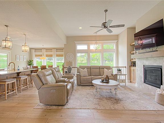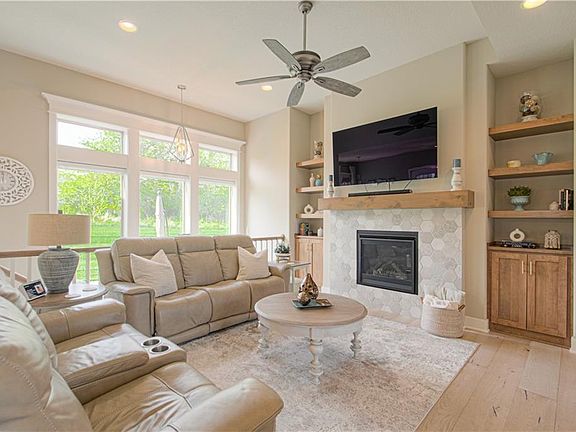 Stunning and Award Winning Reverse 1.5 Story in Benson Place Village. This home is a rare offering and sits in a highly desirable area and school district. The stylish touches this home offers envelopes you as you enter. The wide open Living Room flows into the kitchen and dining room with a large kitchen island for easy entertaining. Main floor features include wide plank wood flooring, contemporary fireplace tile work and built-ins and gorgeous custom cabinetry with quartz countertops. Soothing wall colors make the Primary Suite a place for relaxation and comfort. Stunning finishes throughout with no area left untouched. True Main Level living with laundry, 2 Bedrooms and 2 Baths on one floor. There is extra living space in the finished basement with spacious Family Room, 3rd Bedroom and 3rd full Bathroom along with the perfect amount of storage. The sellers have upgraded the outside livable space with a 9 x 11 Screened in porch along with a huge colored/stamped concrete patio that extends from porch to back of home. Plenty of space to grill, entertain or relax watching deer on a regular basis that hang out on the edge of the backyard greenspace. Benson Place Village is maintenance provided community featuring a lock and leave lifestyle subject to annual dues and monthly maintenance fees which includes Lawn Care, snow clearing and sprinkler system maintenance. This home is like new and was a 2018 award winner in the Parade of Homes. There are very few of these properties that become available and will not last long. Run don't walk or you might be too late.
