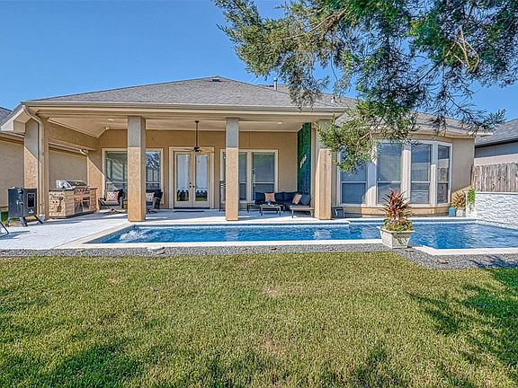 Luxury patio home in the coveted gated golf course community of Augusta Pines. Grand Foyer welcomes you to soaring ceiling w/crown moulding, artisan finishes, designer lighting and rich wood flooring. A spacious Study has wall of bookcases, and large window for natural lighting. Formal Dining boasts a designer chandelier and dramatic artisan finished ceiling and cove lighting. This 3BR, 2BA home checks all the boxes for entertaining & relaxation. Walls of windows brighten the Family Room overlooking a beautiful contemporary pool with heater/chiller to enjoy year round. Chef's kitchen w/SS appliances, center island, & curved raised bar allows you to enjoy guests while cooking; breakfast area & wine grotto completes this expansive space. Primary suite showcases wood floors, sitting area, dramatic ceiling, coved lighting, & contempo ceiling fan. Ensuite Bath completes your retreat. Head upstairs to enjoy the Media Room. Tons of storage. Come see all this home has to offer!