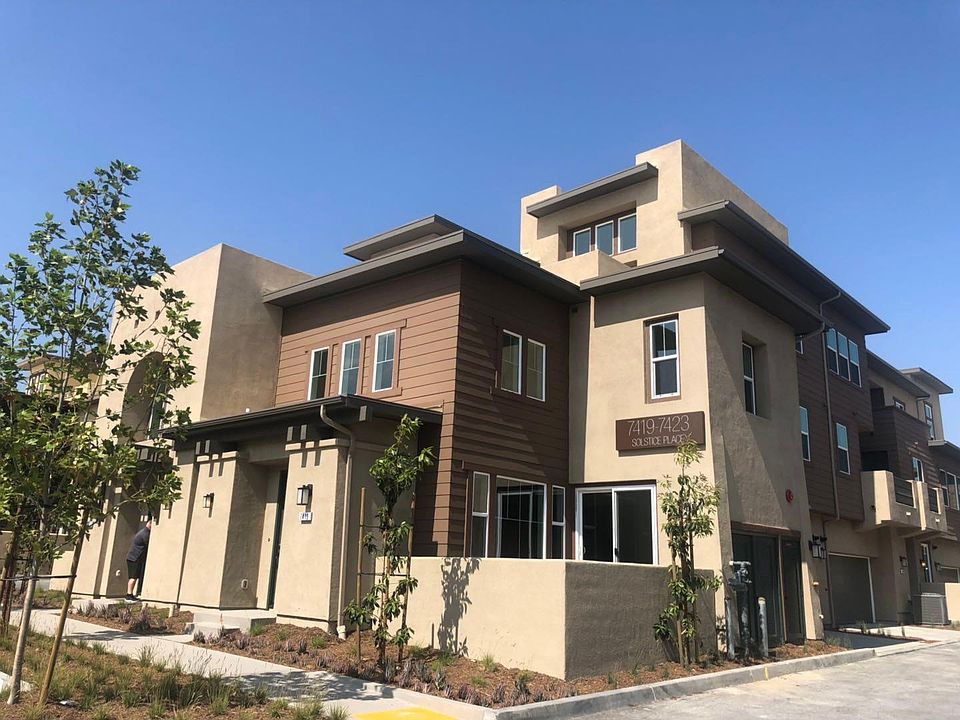 Built in 2019 condo with spacious balcony and patio, blinds has been installed, very convenient location.Walking distance to Bank of America, Stater Bros, and CVS etc. High ceiling in family room.wood and carpet flooring.Fridge and washer dryer included. Two car garage. Community has pool and play ground. No pets. Deposit is two month rent. Owner pays HOA fees including gardening , tenant pay all utilities. No smoking .No pets.