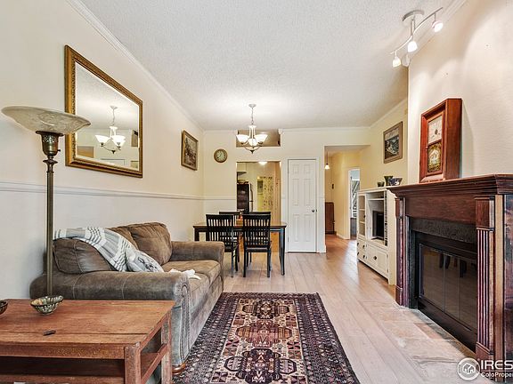 Charming 2 bedroom, 2 bath main level condo. Large fenced in patio with pull down blinds backs to a manicured green belt with mature landscaping. This well cared for home has been updated, 2014: New A/C, Furnace, Appliances, Granite, Custom Tile Back Splash & Sliders. 2018: New window 2018 & new glass fireplace insert. 2019: New Flooring (50 yr) New Kitchen Travertine Tile & New Garage door opener. Community features a pool, gym, parks and nearby trails. Shopping is nearby and just a short commute to Niwot, Longmont or Boulder. **Refer to driving Direction, as this does not always come up in the correct location on GPS**
