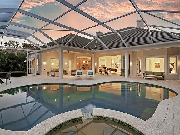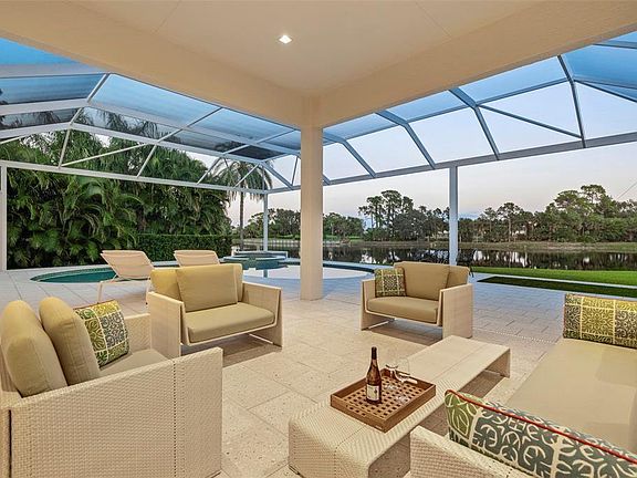 Rare offering in University Park Country Club in upscale Wimbledon. Surrounded by lush, vibrant landscaping, this exceedingly private 3,718-square-foot lakefront home was completely remodeled down to the studs in 2018, boasting exquisite appointments, finishes and features throughout. The one-of-a-kind meticulously redesigned residence offers 3 bedrooms, 4.5-baths, plus a well-appointed office with an inviting open floorplan featuring 24" neutral porcelain tile and an exceptional waterfront outdoor living space. The thoughtful design includes voluminous custom cabinetry for storage and built-in custom desks, file cabinets, bookcases, solid teak shelving and much more. The residence also has impact glass windows and doors and a multitude of upgrades, including a whole-house water purification and softening system, whole house Generator, solid-core doors, high-end hardware, Ethernet CAT 6 wiring for internet and TV, advanced surge protection, programmable LED landscape lighting, central vacuum and soundproofing in every room. The chic contemporary kitchen features striking Fusion quartzite countertops and backsplash, a massive island with teak shelves, top-of-the-line appliances hidden behind stylish cabinet panels, a pantry cabinet with abundant storage, and a breakfast area beside a large aquarium window with stunning views. The living room has 12-foot ceilings and soaring glass sliders that open to an expansive private lanai that's perfect for entertaining and relaxing, with a heated pool and spa, fabulous lake, golf course and wildlife views through a durable panoramic "Super Screen," and shell-stone pavers. From the lanai, you'll enjoy convenient access to your expansive primary suite, featuring large windows and his-and-her bathrooms, each with walk-in closets, walk-in showers, quartz countertops and capacious teak cabinetry. Another highlight of this distinctive home is a custom laundry room everyone will love, from its plentiful storage and beautiful décor to lush greenery outside its sizable window. Don't miss an opportunity to explore this one-of-a-kind home in beautiful University Park Country Club, which offers 27 holes of championship golf, tennis courts, new pickleball courts, fitness center, croquet and dining. University Park is close to fine dining and upscale shopping at UTC Mall, I-75 and SRQ airport, and just a short drive to downtown Sarasota and the area's picturesque beaches.