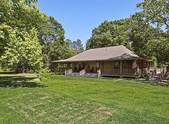 Cedar wood house with wrap around porch nestled within 21 acres. Property surrounded by leased property used for hunting and timber. Open floor plan. Tongue and Groove Oak flooring. Master bedroom has two full baths for him and her. Hickory cabinets with walk-in pantry, granite counter tops, and separate hot water dispenser sink, 1 gas stove and 1 Jenn Air stove, 2 central air units. Carport has attached utility room. Wheelchair ramp accessible.