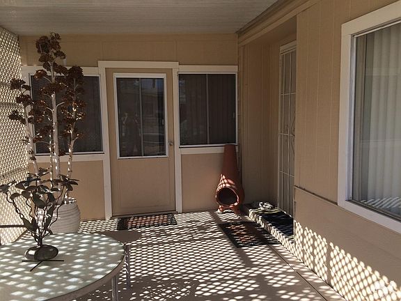 On the golf course with a beautiful view and large back patio!!! A nice flow pattern with 2 bedrooms and 2 baths. Most furniture stays. All you have to do is move in! An extra room has been added - approx 150 sq ft - but not permitted. The house is in very good condition and move-in ready! Some furniture to remain. HOA fees are $304 and includes 2 swimming pools/spas, tennis and pickle ball courts, bocce ball, cable TV and FREE golf for 2! Where else can you find a move-in ready house on the golf course for this price?? You OWN the land. Don't wait, come see it now. Portola Country Club is a 55+ community.