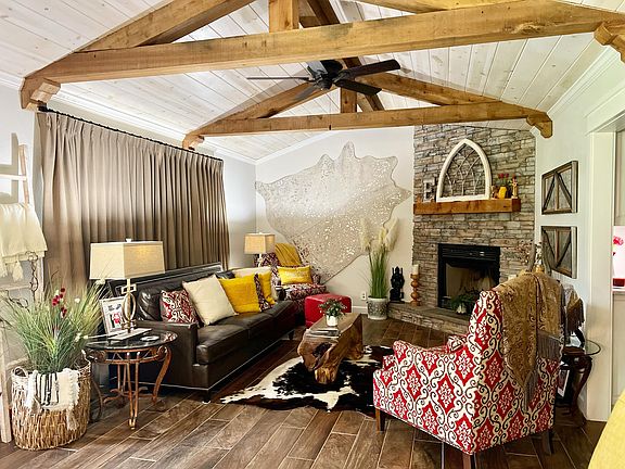 This gorgeous home has been remodeled from floor to ceiling! Step inside from the large front porch to the beautiful dining and living room space. This area features wood beams, a vaulted wood planked ceiling, and a corner fireplace with floor-to-ceiling stonework. The custom kitchen features beautiful cabinetry and lighting with a propane gas double oven. Off the kitchen, you'll find a nice-sized mudroom with its own entry and a walk-in pantry. Relax in the master suite, which features a unique barn door, walk-in double head shower, and soaker tub. The home also features 2 additional bedrooms, one with a private bathroom and the other with a hidden bookcase closet. There is also a basement that could be used as a 4th bedroom. Find it all on 10 amazing acres in the country. More land avail