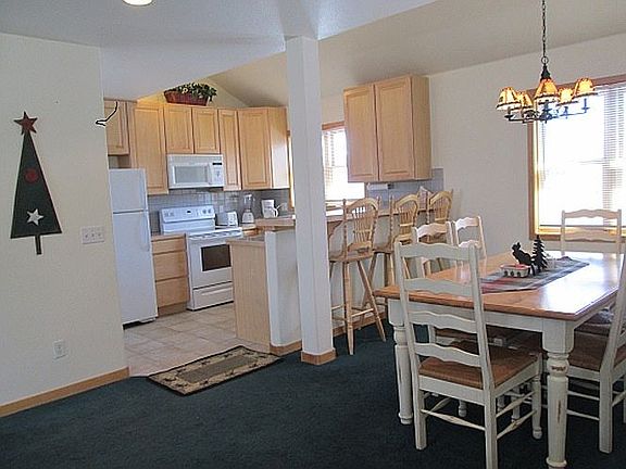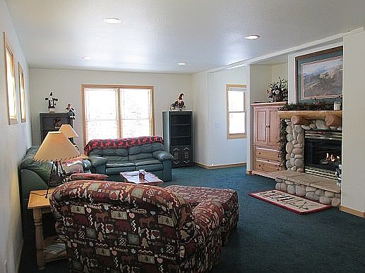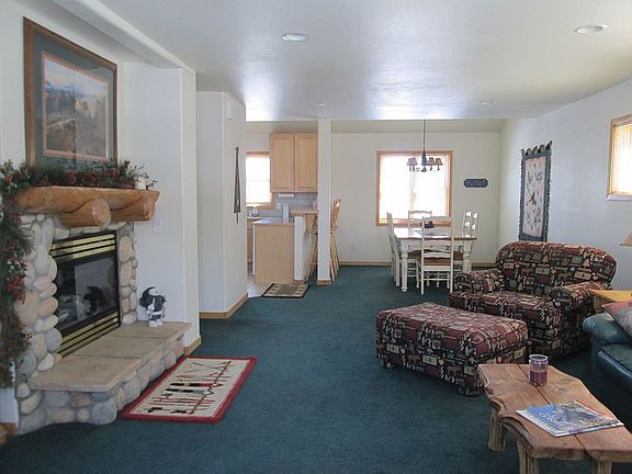 Large2/2.5 townhome, 2 fireplaces, 2 car garage. Front entrance slate hallway, bedroom to right with its own bath. two twin beds, log bunk bed. Laundry room to left . Upstairs to main living area with dining room. Kitchen joins to the left with pass through bar and bar stools. Upstairs master with cathedral ceilings, sliding door to balcony with mountain views, walk in closet, large bath. Many windows throughout! Walk to Summit Stage transfer station, Whole Foods, many restaurants, bank, Safeway, Walmart and bike path. Yearly tenant.. no seasonal, Tenants pay gas/electric Basic cable, water, sanitation included. NS, NP 4